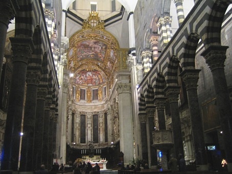 Genovassa piipahtavan kannattaa ehdottomasti käydä myös kaupungin upeassa kirkossa. Se on ylväs ja erikoinen mustavalkoisessa kuosissaan. Sisusta on mitä koristeellisen kavalkadi arkadikaaria, kultaa ja mirhamia ja kauniita maalauksia.